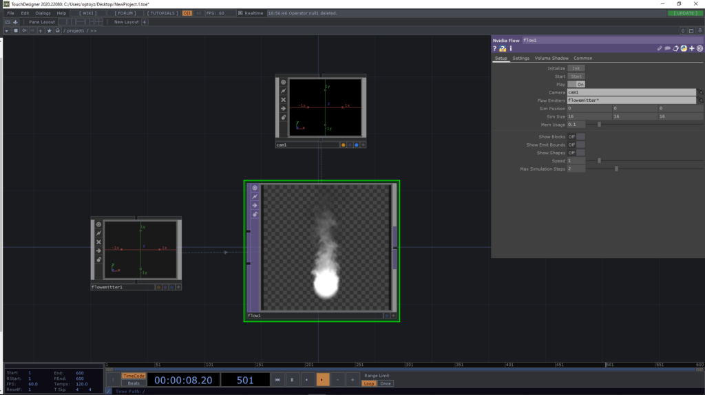 - The Nvidia Flow TOP calculates the Flow simulation and renders it.